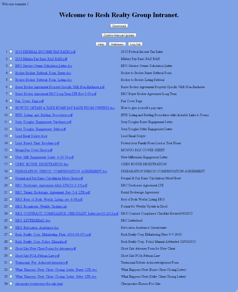 11. Dowloading a Document from the Intranet IF all looks well... now click the link that says... "Click here to download your files." scroll down to the next image. ![]()